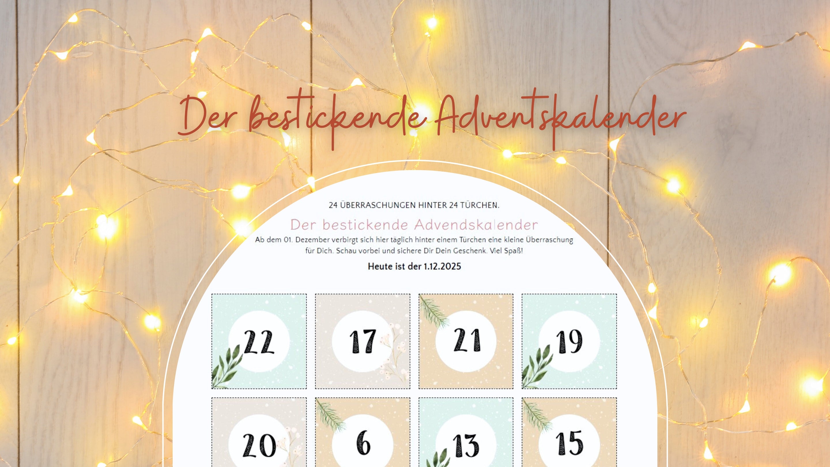 Die schönste Zeit des Jahres beginnt – voller Ruhe, Licht und kreativer Freude. Entdecke zauberhafte Stickdateien für Weihnachten: Wunschlichtbeutel, Mädchen mit Kranz und Kaninchenherz – liebevoll gestickt und perfekt zum...