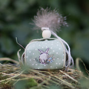 Ebenso der passende Anhänger, welcher auf der Rückseite eine kleine Öffnung für allerlei zu Versteckendes hat. Hier musst Du lediglich eine gerade Naht mit der Nähmaschine nähen.