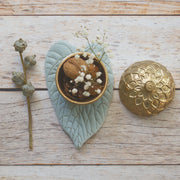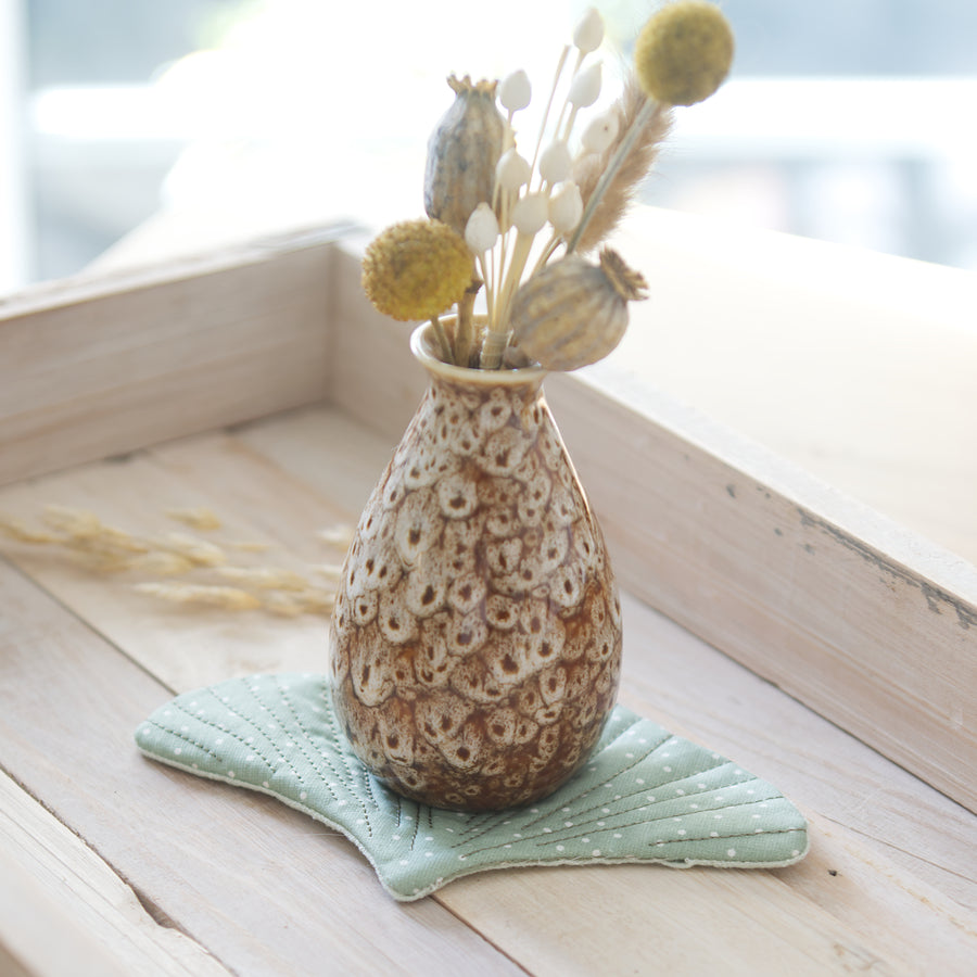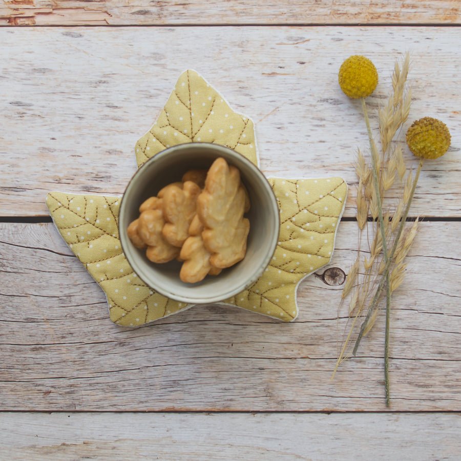 So einfach und so gut sind diese Blätter eine schöne Dekoration für Deinen Tisch. Sie eignen sich aber auch als Untersetzer für Blumenvasen oder kleine Dekorationsgegenstände oder auch schön verpackt als Gastgeschenk oder Mitbringsel. Spiele mit den Stofffarben, denn Sie sind keinesfalls nur für den Herbst gedacht, sondern je nach verwendetem Stoff und Farbe im ganzen Jahr und auch passend zu Deiner liebsten Einrichtungsfarbe umsetzbar. Eingearbeitetes Volumenvlies lässt den Untersetzer und seine Struktur mit den feinen Blattaderdetails besonders schön zur Geltung kommen. Gestickt sind sie mit bis zu 3.000 Stichen in Windeseile und weil diese Stickdateien besonders stoffsparend angelegt sind, benötigst Du je Untersetzer maximal 20 x 22 cm Stoff für Vorder- und Rückseite, dazu einmal Volumenvlies in der gleichen Größe. Zum Schluss wird der Mugrug mit der Hand oder der Nähmaschine verschlossen.