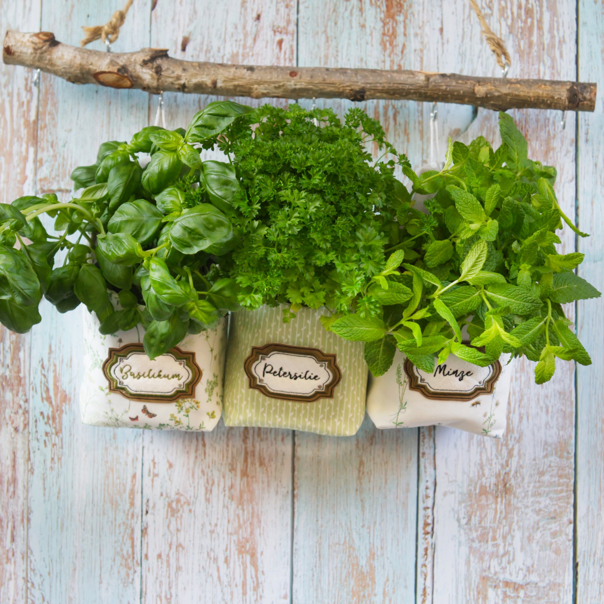 Stickdateien Set Kräuterhängetöpfe mit Nähanleitung und Schnittmuster