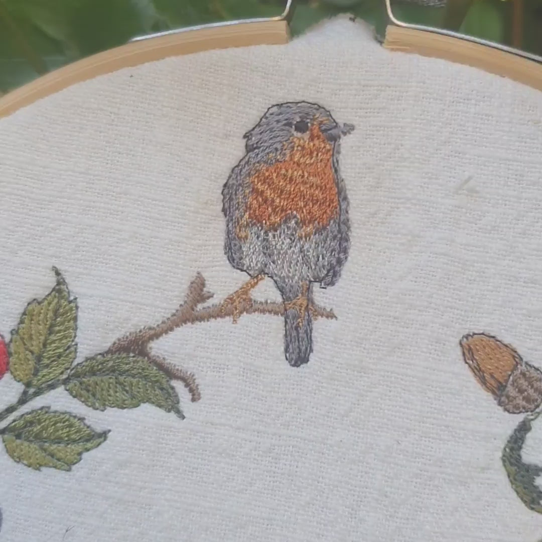 Stickdatei Pilze und Rotkehlchen