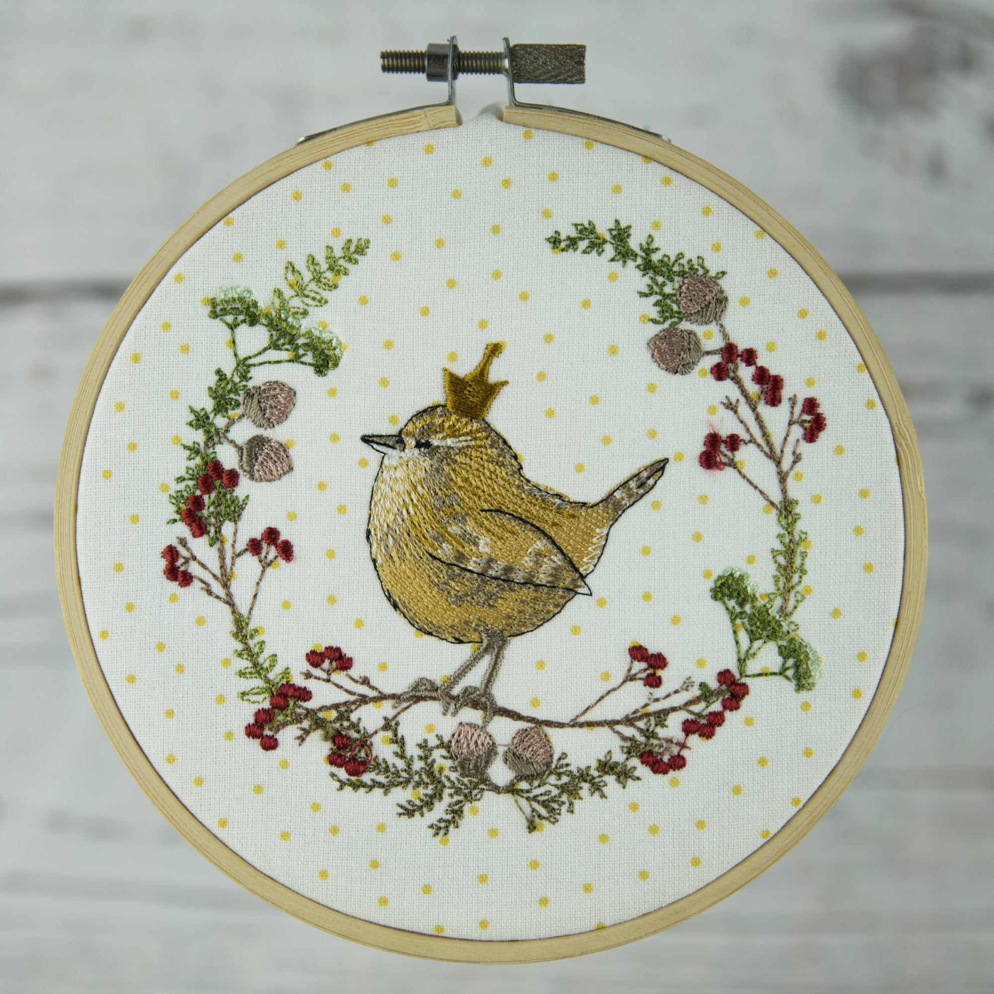 Stickdatei Zaunkönig im Beerenkranz