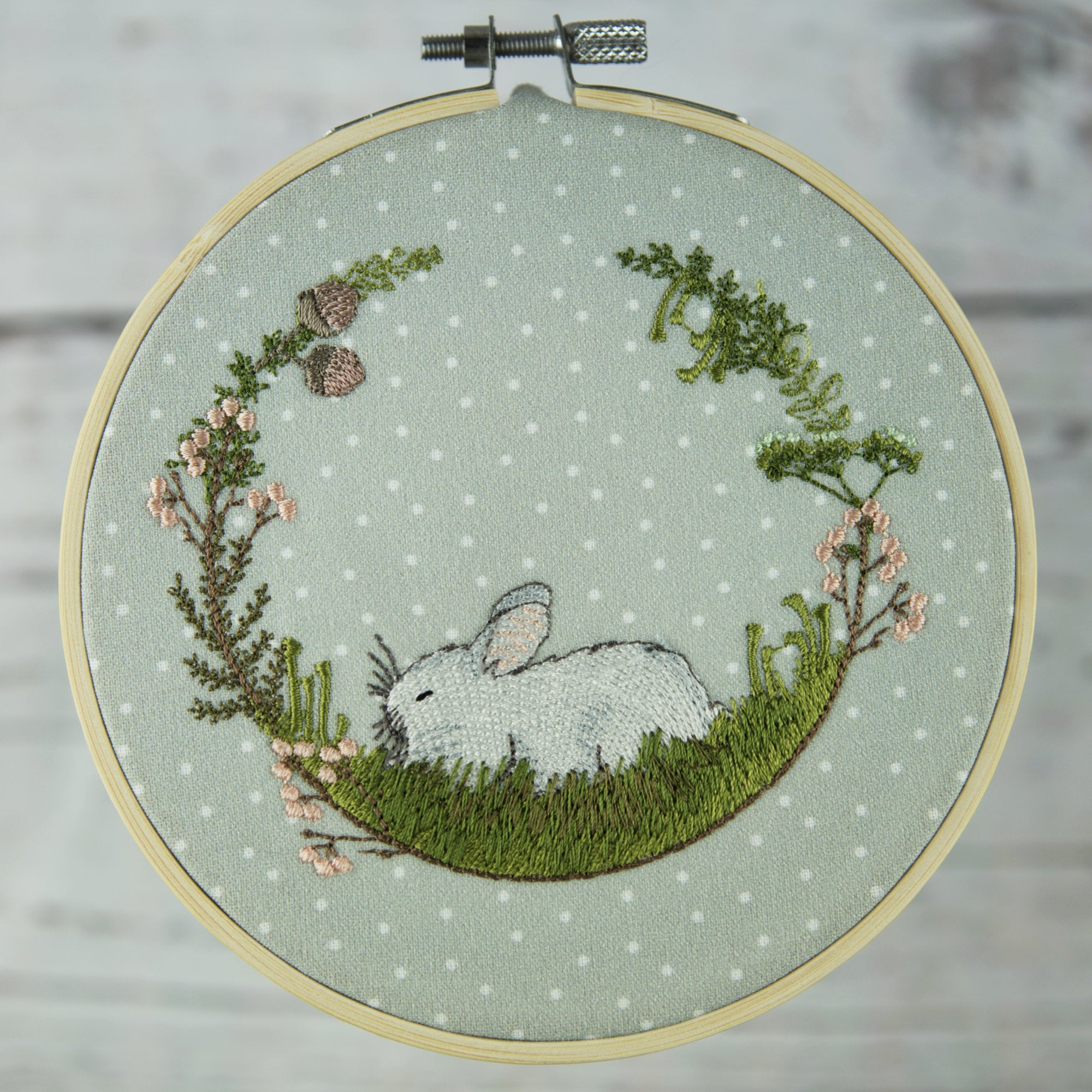 Stickdatei Kaninchen im Mooskranz