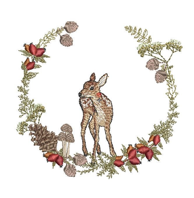 Stickdatei Reh im Hagebuttenkranz