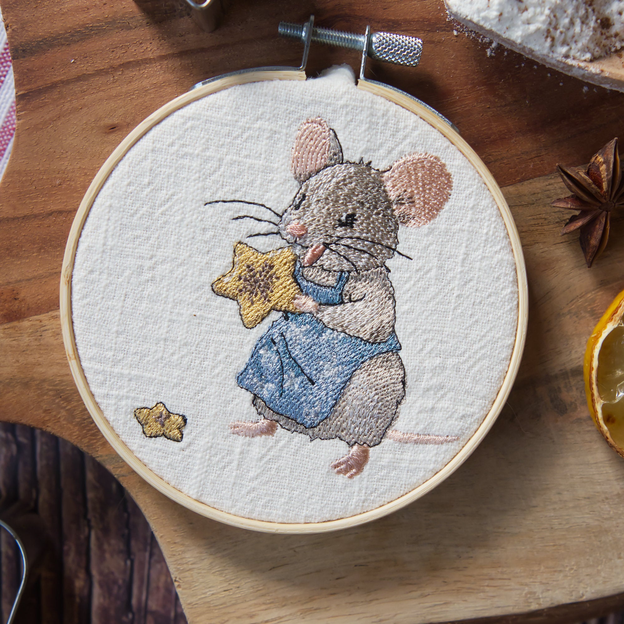 Stickdatei Maus mit Nusskorb – Herbstliches Stickmotiv, kombinierbar mit der Stickdatei Apfelhaus
